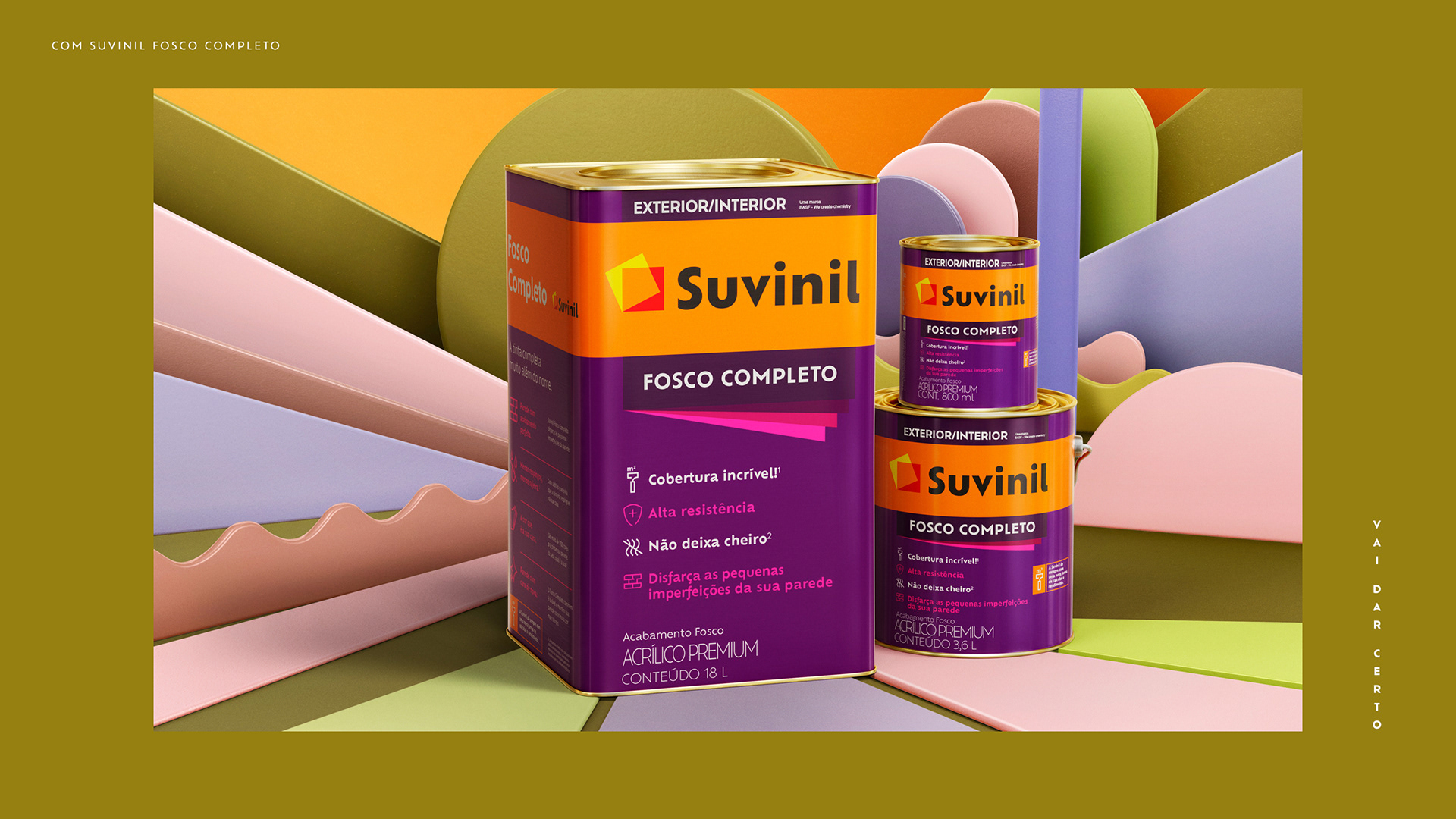 Pintar a casa começa na escolha da tinta ideal. Para mostrar toda a versatilidade de Suvinil Fosco Completo e incentivar as pessoas a prepararem a casa para os reencontros, criamos o conceito Com Suvinil Fosco Vai dar Certo. O conceito ganhou vida num feat entre Céu, Thiaguinho e TropKillaz, regravando “Go Back”, sucesso da banda Titãs nos anos 1980.